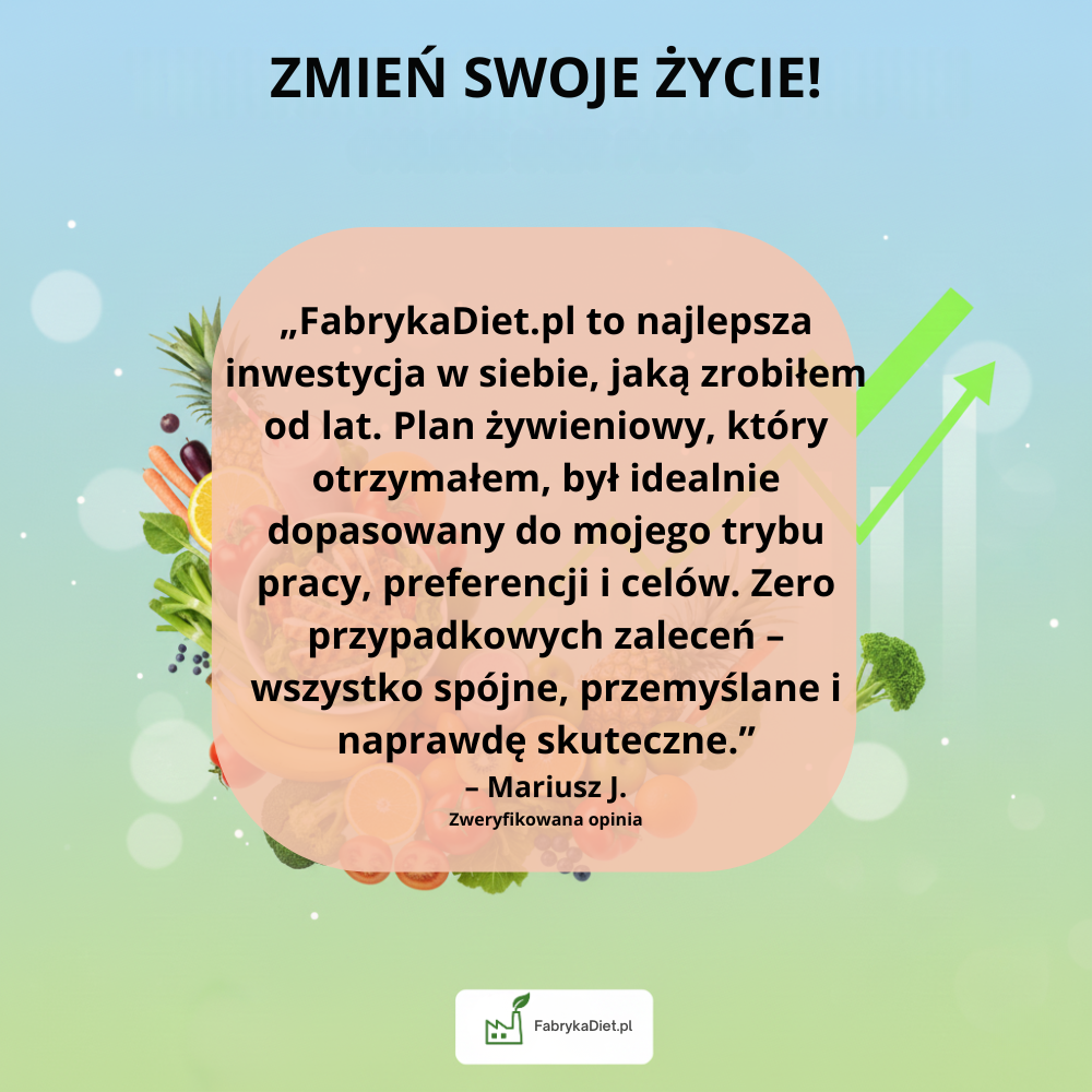Jeśli nie chcesz trenować lub obecnie nie możesz, przygotuję dietę dostosowaną wyłącznie do Twojego trybu życia. Plan treningowy jest dodatkiem — możesz z niego korzystać, ale nie musisz.